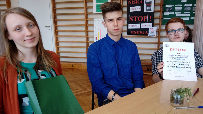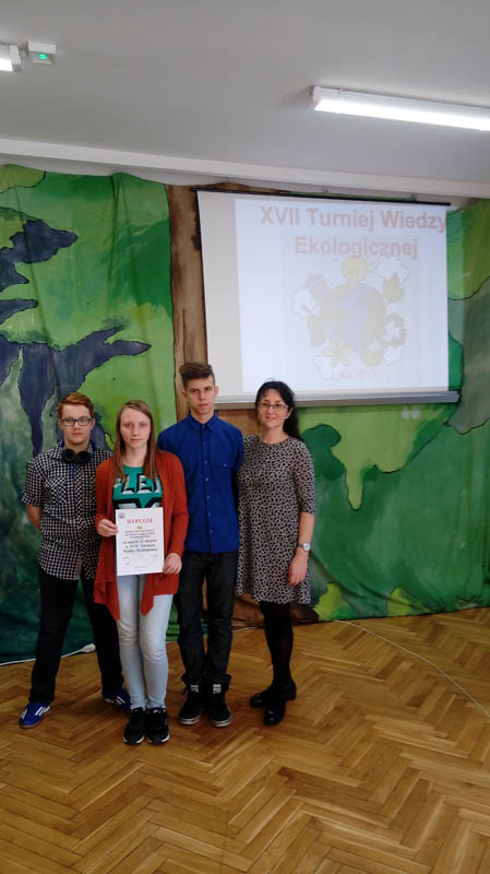 11 maja, wzięliśmy udział w międzypowiatowym XVII Turnieju Wiedzy Ekologicznej w Łasku. Naszą Szkołę reprezentowali uczniowie Gimnazjum: Natalia Pichlak, Bartłomiej Kępniak, Krzysztof Toboła, przygotowani przez nauczycielkę biologii Panią Martę Pałuszyńską. W Turnieju uczestniczyły drużyny z gimnazjów specjalnych całego regionu łódzkiego. Uczniowie mierzyli się z zadaniami w zakresie wiedzy o systematyce bezkręgowców i kręgowców, zwierzętach i roślinach, w tym objętych ochroną, o Parkach Narodowych