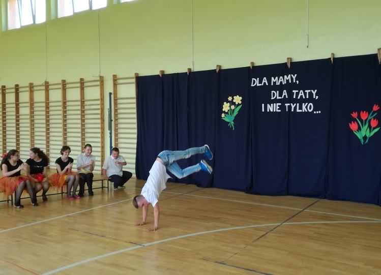 Dnia 26.05.2017r. w naszej szkole odbyło się przedstawienie pt.: „Dla mamy, dla taty i nie tylko…”. W akademii wystąpiły dzieci i młodzież z naszej szkoły i przedszkola. Przedstawienie rozpoczęło się interpretacją taneczną do piosenki pt.: „Taniec Mai”, a zakończyło krakowiakiem do piosenki pt.: „Krakowiaczek jeden”. Ponadto wystąpiła młodzież w tańcu breakdance.