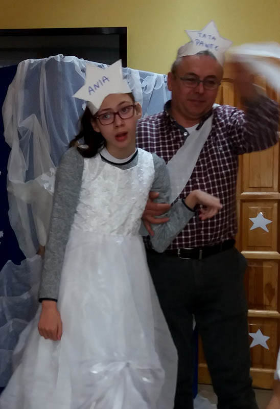 a chętne kroków walczyka. Namalowały także kilkumetrowy obraz o tematyce zimowej i przygotowały improwizowane przedstawienie „ Zimowa Bajka” ,