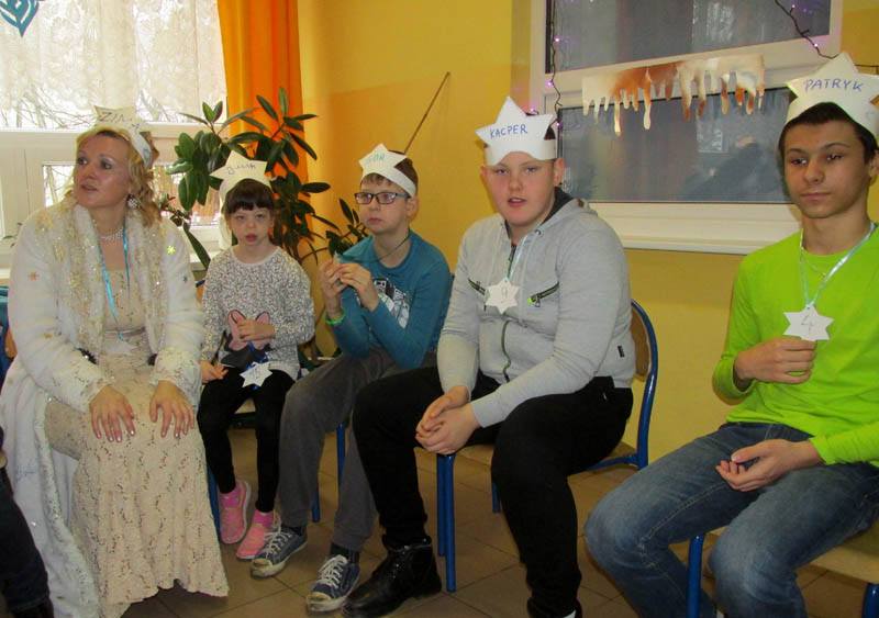 w Zduńskiej Woli odbyła się kolejna impreza dla dzieci z cyklu „CZTERY PORY ROKU” – pt. „ W pałacu Królowej Śniegu”. Pani Bożena Janicka i pani Emilia Owczarek (która wcieliła się w postać Królowej Śniegu) tym razem wprowadziły uczniów w świat bajki.