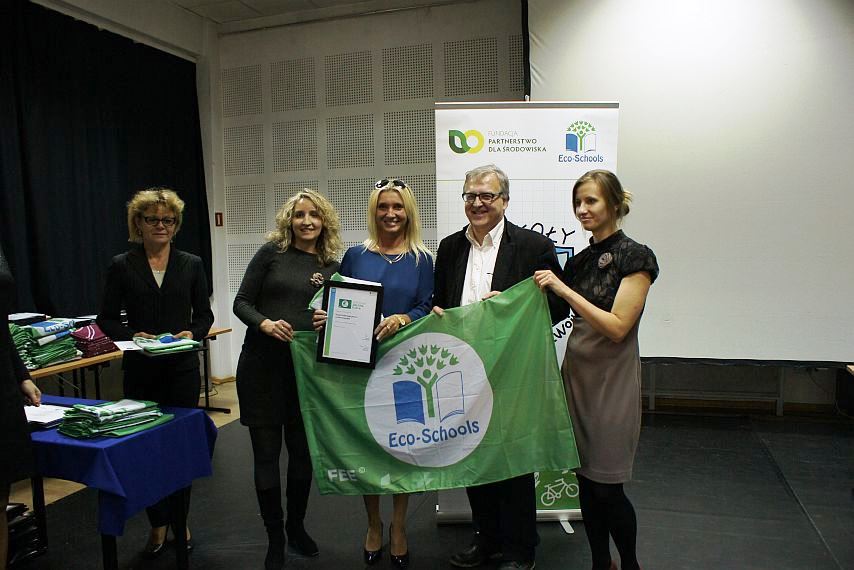 Uroczyste wręczenie certyfikatów odbyło się podczas XII Ogólnopolskiego Zjazdu „Szkół dla Ekorozwoju”, który odbył się 29 września 2014r. w Krakowie. Był to czas na wymianę najnowszych doświadczeń, wzajemnej inspiracji i celebrowania sukcesów uwieńczonych krajowym certyfikatem Lokalnego Centrum Aktywności Ekologicznej i międzynarodowej Zielonej Flagi. Zespół Szkół podczas Zjazdu reprezentowała Dyrektor Renata Kosińska – Graf, która osobiście odebrała, z rąk Prezesa Fundacji Pana Rafała Serafina, Certyfikat oraz Zieloną Flagę. Pisemne podziękowania od Fundacji otrzymały również koordynatorki Programu w Zespole Szkół – Nauczycielki Marta Pałuszyńska i Aneta Piontek.