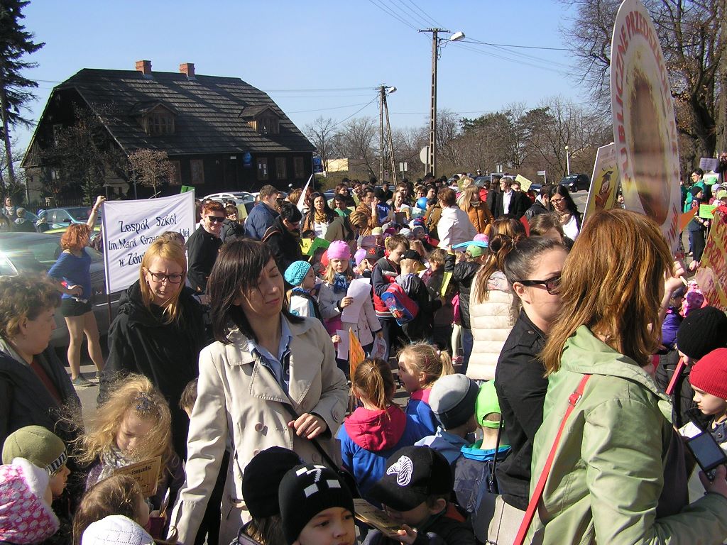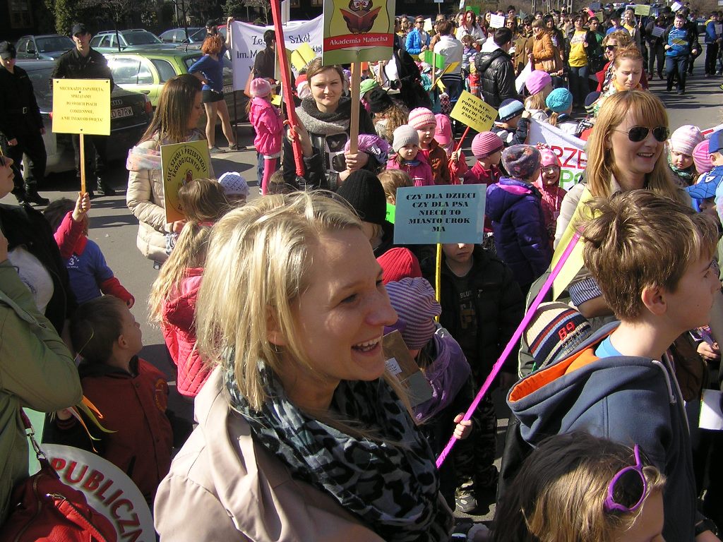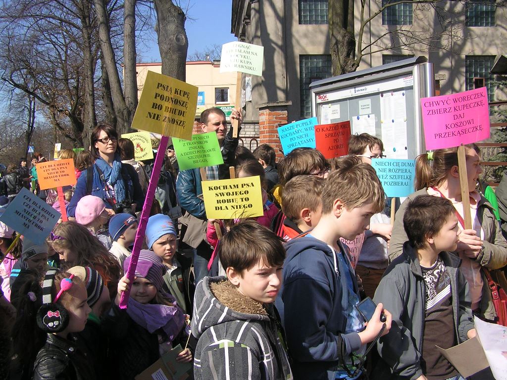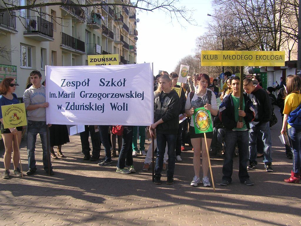 Uczniowie Zespołu Szkół im. Marii Grzegorzewskiej, należący do szkolnego Klubu Młodego Ekologa pod kierunkiem nauczycielek Pani Marty Pałuszyńskiej i Pani Anety Piontek, we współpracy z Dyrektorem Szkoły Panią Renatą Kosińską – Graf oraz z placówkami należącymi do Sieci Szkół i Przedszkoli Ekologicznych w Zduńskiej Woli, zorganizowali akcję protestacyjną „Psie kupy na śmietniki, dzieci na trawniki”, celowo wybierając Pierwszy Dzień Wiosny na datę przeprowadzenia protestu. 21 marca 2014r. tłum dzieci, młodzieży, ich rodziców i nauczycieli przeszedł przez Zduńską Wolę z transparentami, chorągiewkami i balonami oraz hasłami typu: ,,Nie brudź sobie kalosza, psią kupkę wrzuć do kasza”, ,,Sprzątaj kupkę pieska swego, nikt nie wdepnie w nią, kolego!” , ,,Niech cię duma nie rozpiera, weź szufelkę i pozbieraj” czy ,,Psie sprawy nie na placu do zabawy”.