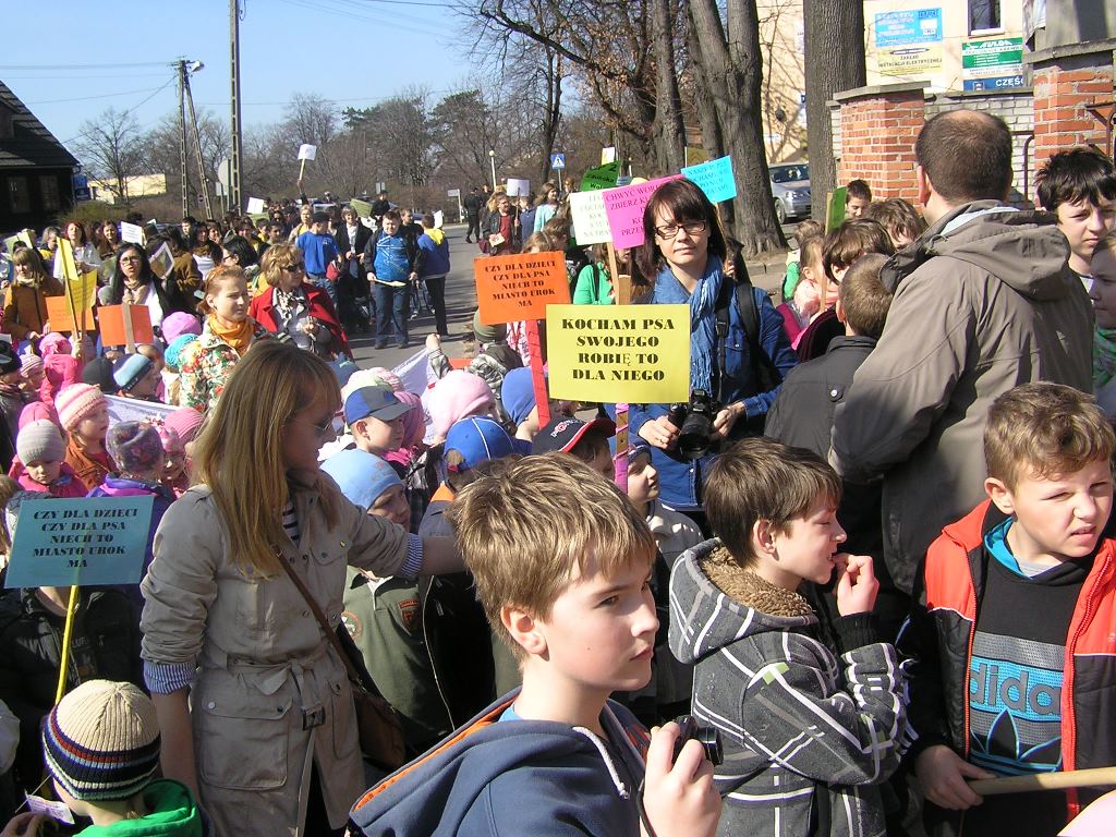 Akcja ,,Psie kupy na śmietniki, dzieciaki na trawniki!”, w której uczestniczyło ponad 550 dzieci, młodzieży i dorosłych, rozpoczęła się w Pasażu Rajczaka. Tam uczestnicy wręczyli pisemną petycję władzom Spółdzielni Mieszkaniowej „Lokator”, pod którą podpisało się ponad 2 tys. osób popierających akcję. Następnie ulicą Łaską oraz al. Kościuszki przeszli do magistratu i starostwa. Do władz trafiły również, własnoręcznie przez dzieci i młodzież stworzone, wielkie petycje, torebki na psie odchody oraz chorągiewki, którymi protestujący znakowali miejsca na trawnikach, gdzie zalegały psie odchody. Podobnie takie torebki i chorągiewki otrzymywali od protestujących przechodnie. Nad bezpieczeństwem uczestników przemarszu czuwali Policjanci Komendy Powiatowej Policji w Zduńskiej Woli oraz uczniowie Szkoły Policyjnej w Wojsławicach. Przebieg akcji relacjonowały lokalne telewizje, radio, gazety.