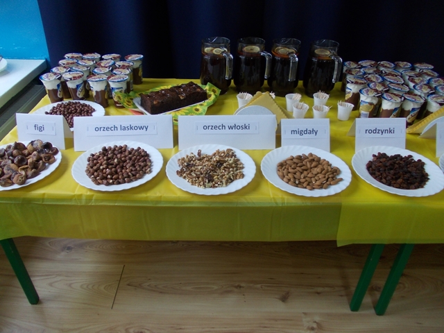 Z pomocą swoich nauczycieli i opiekunów przygotowały ciasta i desery bakaliowe oraz napoje. Uczestnicy wzięli udział w konkursach i zabawach tematycznych. Spotkanie wszystkim zebranym sprawiło wiele radości, przysporzyło wiedzy i nowych umiejętności. Zespół Szkół im. Marii Grzegorzewskiej reprezentowali uczniowie klasy 3bzu z wychowawcą – Panią Agnieszką Pańko, pod kierunkiem koordynatorek Projektu – Pani Marty Pałuszyńskiej i Pani Anety Piontek. Uczniowie przygotowali prezentację zdrowotnych właściwości kakao i zaproponowali ciasto kakaowe z bakaliami, jako posiłek zawierający dużą ilość tego produktu. „Pałeczką sztafety” przekazaną Gospodarzom przez uczniów było kakao.