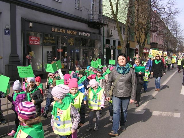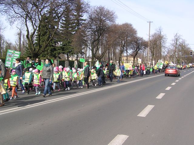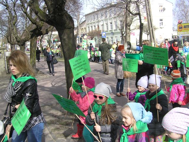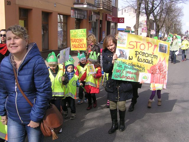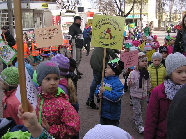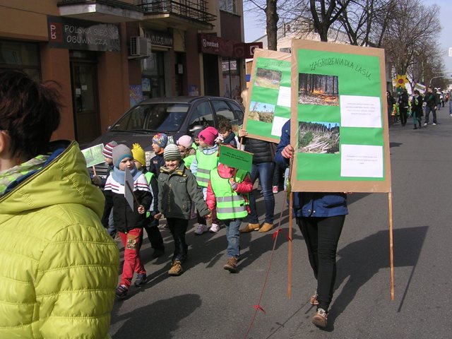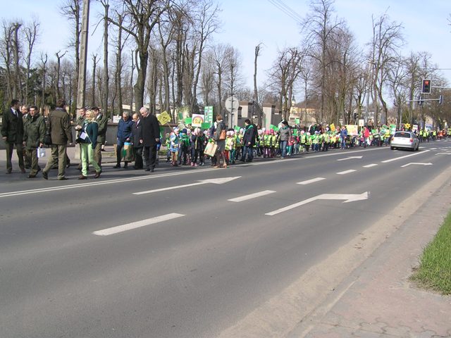 Po zakończonej części oficjalnej, wszyscy zebrani ruszyli pochodem, ulicami miasta. Dzieci i młodzież wygłaszały, przez tuby nagłaśniające, hasła nawołujące do ochrony lasów, rozdawały przechodniom samodzielnie wykonane ulotki dotyczące akcji, prezentowały lasy, ich mieszkańców, pracowników i opiekunów oraz zagrożenia, jakie na nie czyhają z nierozsądnych zachowań człowieka, na samodzielnie przygotowanych tablicach edukacyjnych. W rękach niosły tabliczki z hasłami dotyczącymi tematyki akcji. Pochód relacjonowały lokalne media, które towarzyszyły uczestnikom przemarszu. Happening zakończył się na Pasażu Rajczaka. Goście podziękowali wszystkim zgromadzonym za udział w Happeningu. Całość wydarzenia zwieńczyła wspólna fotografia uczestników akcji.