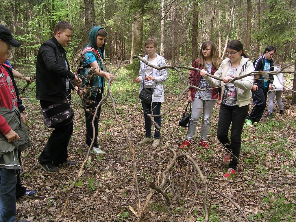 Po zajęciach z Leśniczym uczestnicy Podchodów, podzieleni na grupy „czerwonych” i „zielonych”, „uciekających” i „goniących”, wyruszyli na specjalnie przygotowane trasy Podchodów. Uczniowie Klubu Młodego Ekologa byli grupą „zielonych”, „goniących” uczniów ze Szkoły Podstawowej nr 2. Na trasie czekało na uczniów mnóstwo zadań przyrodniczych, których poprawne wykonanie, pozwalało rozpoznać kierunek, w którym należało dalej biec, by dotrzeć do celu. Trzeba było wykazać się wiedzą o lesie i jego mieszkańcach, ale też ważne były różnorodne umiejętności i sprawność fizyczna.