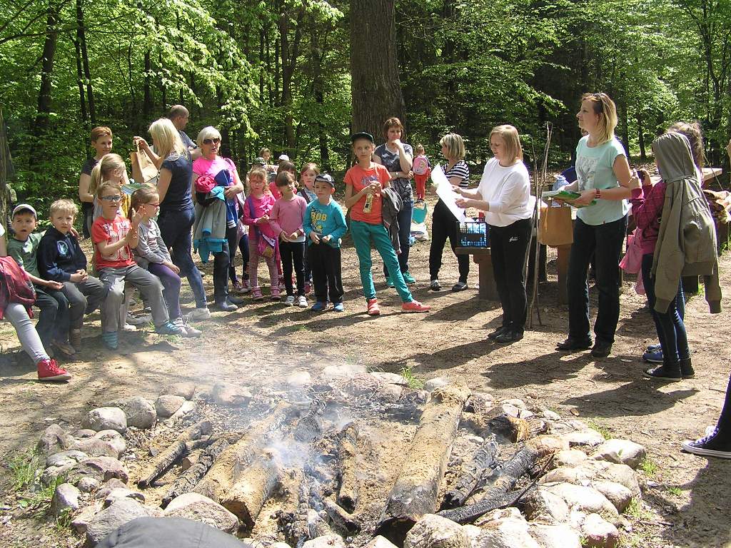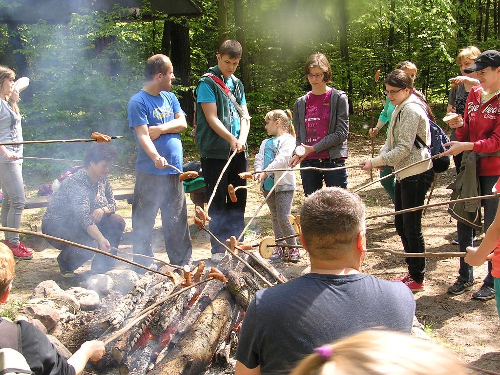 Celem, do którego dotarły wszystkie drużyny, okazało się specjalnie wyznaczone miejsce piknikowe w lesie. Tam czekało na wszystkich rozpalone ognisko, nad którym potem uczestnicy zabawy upiekli kiełbaski. Po posiłku zorganizowano jeszcze gry i zabawy sportowe.